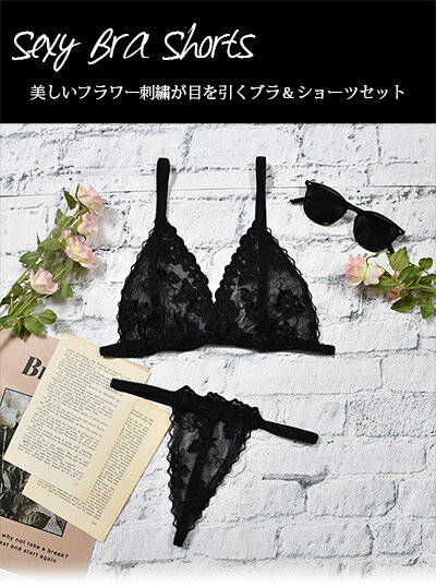 今なら ポイント5倍 ! 【メール便をご選択で 送料無料 】ブラ ショーツ セット Tバック 色っぽいたっぷりフラワー ブラ ショーツ ブラセット 」 セクシー下着 フリーサイズ ノンワイヤーブラ オープン ブラック ポイント消化[[r-7988]]
