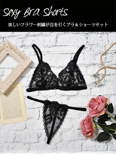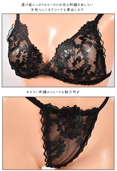 今なら ポイント5倍 ! 【メール便をご選択で 送料無料 】ブラ ショーツ セット Tバック 誘惑ブラックフラワー ブラ ショーツ ブラセット 」 セクシー下着 フリーサイズ ノンワイヤーブラ オープン ブラック ポイント消化[[r-7986]]