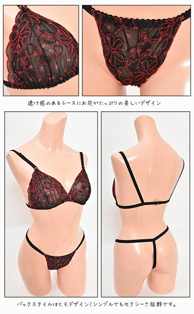 今なら ポイント5倍 ! 1000円ポッキリ メール便 送料無料ブラ ショーツ セット Tバック 「NEW ドットとお花のセクシー ブラ ショーツ ブラセット 」 セクシー下着 フリーサイズ ノンワイヤーブラ オープン ブラック[[r-6718]]
