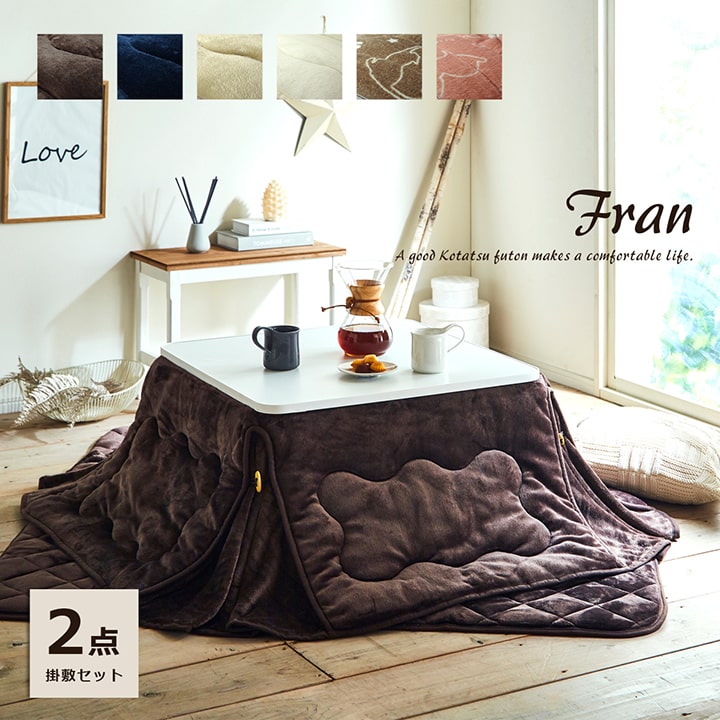 シリーズ展開 ■ フラン(省)掛布団単品 60×60cm/60×90cm/70×70cm/80×120cm台用 ■ フラン(省)掛布団単品 90×150cm/90×180cm台用 ■ フラン(省)掛布団+敷布団 2点セット ■ フラン(省)掛布団+こたつ台(60×60cm) 2点セット ■ フラン(省)掛布団+こたつ台(70×70cm) 2点セット ■ フラン(省)掛布団+こたつ台(80×120cm) 2点セット ■ フラン(省)掛布団+敷布団+こたつ台(60×60cm) 3点セット ■ フラン(省)掛布団+敷布団+こたつ台(70×70cm) 3点セット ■ フラン(省)掛布団+敷布団+こたつ台(80×120cm) 3点セット