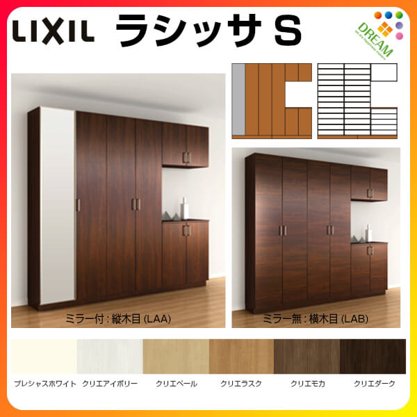 DIYに関する情報 必要技能:大工さん、建具屋さん 必要工具:電動ドリル、電動ドライバー、他 LIXIL/リクシル 玄関収納 ラシッサ S 「ファミリーライン」「ウッディーライン」後継商品 木の風合いや色味を忠実に再現し、色彩学に基づいて誕生したクリエカラーは、どんな色とも相性がよくおしゃれに合わせることができます。
