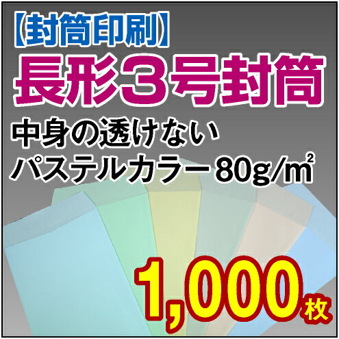 【封筒印刷】長形3号封筒 中身の透けないパステルカラー〈80〉 1,000枚【送料無料】 長3 封筒 印刷 名入れ封筒 定形封筒/オーダー/オリジナル デザイン/A4/3つ折り/会社/企業/会社名/社名/社名入り/名入れ/お店/病院/クリニック/事務用/事務用品/ふうとう