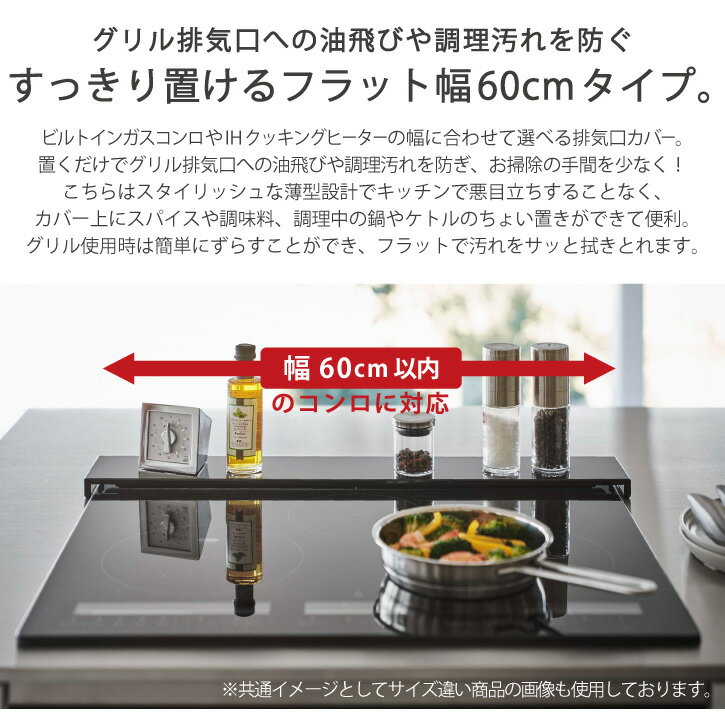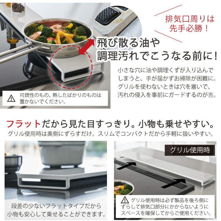 キーワード グリル 排気口 カバー 60cm幅 コンロ 奥 汚れ防止 油跳ね ガード キッチン 収納 一時置き スペース スチール おしゃれ シンプル ホワイト ブラック 5734 5735 YAMAZAKI 山崎実業 202208-05