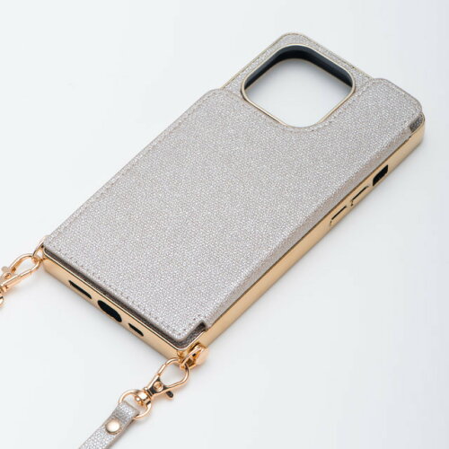 【MAELYS LOUNA】iPhone13 mini スマホケース スマホカバー おしゃれ スマホ ショルダーストラップ パールシルバー ストラップホルダー[▲][C]