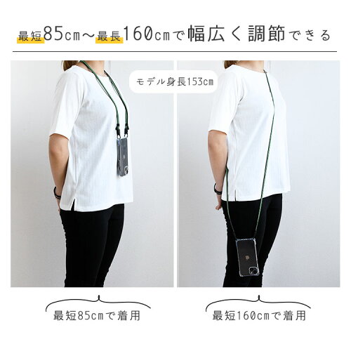 最短85cm~160cmと幅広く調節できるから斜め掛けにも、首掛けにも対応できる優れもの。