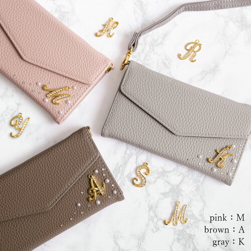ダスティーカラーのケースにキラキラ輝くラインストーンとイニシャル付き。