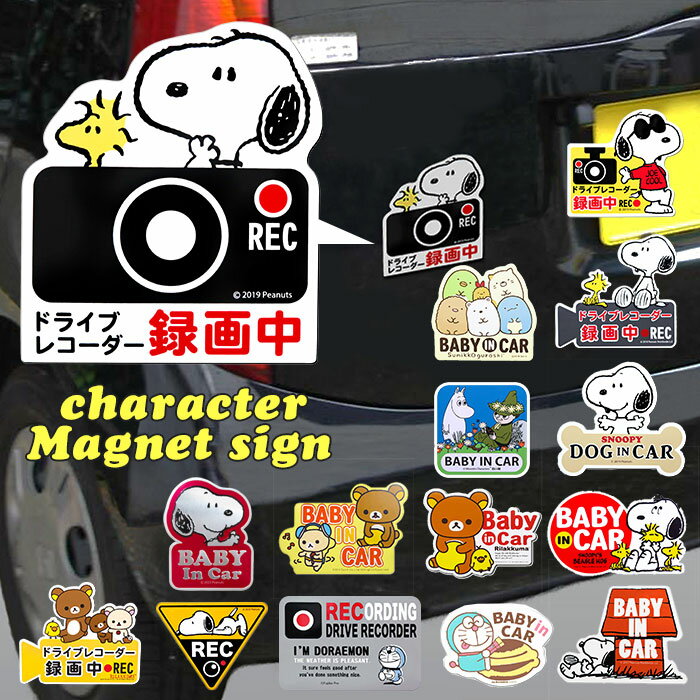 ドライブレコーダー ドッグサイン ステッカー 後方 磁石 通販 マグネットサイン ドラレコ マグネット おしゃれ かわいい スヌーピー SNOOPY リラックマ 録画中 サイン REC 煽り運転防止 あおり運転防止 キャラクター 車 ステッカー 危険運転対策 セキュリティー 防犯