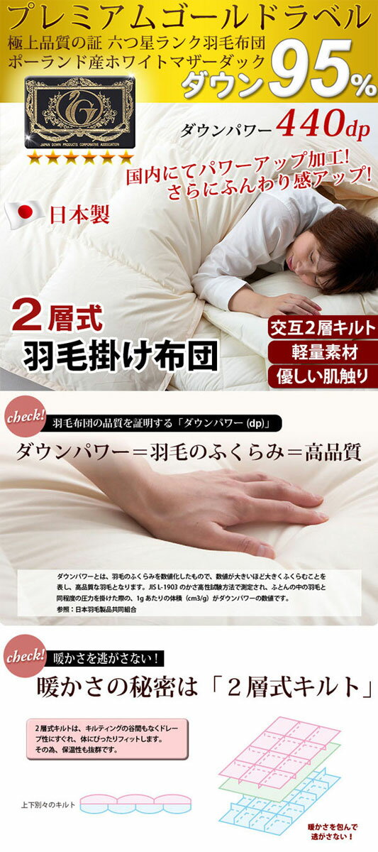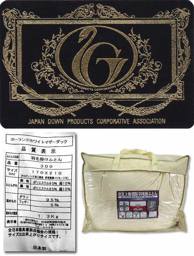 【送料無料】2層式羽毛布団〔ポーランド産マザーダックダウン95%〕セミダブルロング/キナリ/安心の日本製/プレミアムゴールドラベル付き!/パワーアップ加工 ≪お買得!プレミアムゴールドラベル付き!ポーランド産ホワイトマザーダックダウン95%使用の冬用羽毛掛け布団です。